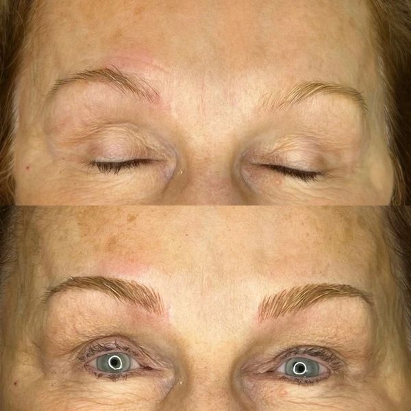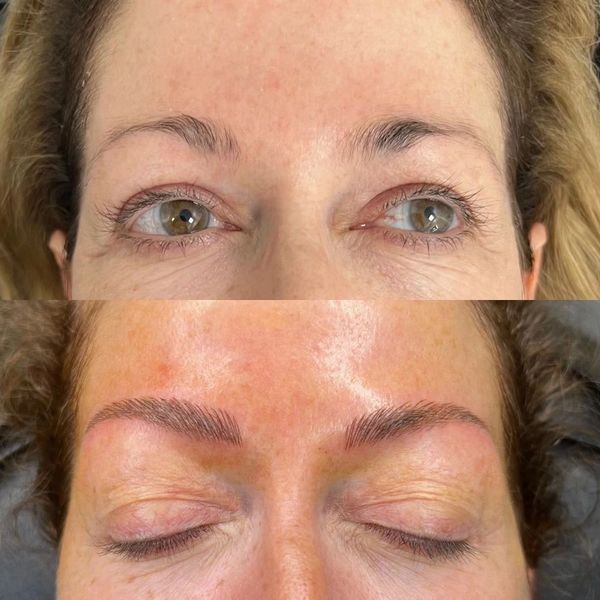 Your brows will look amazing! The skin may be slightly red due to skin sensitivity, but the brows will look soft initially after the procedure. After an hour or so the brows will begin to darken about 30-50%. Once brows are done healing they will shrink and lighten 20-30%.